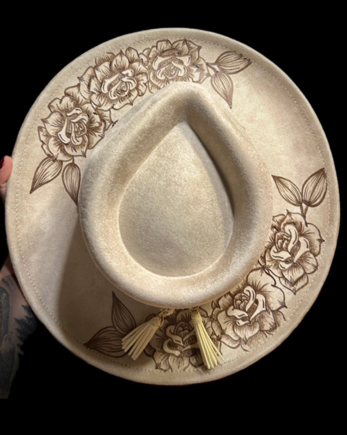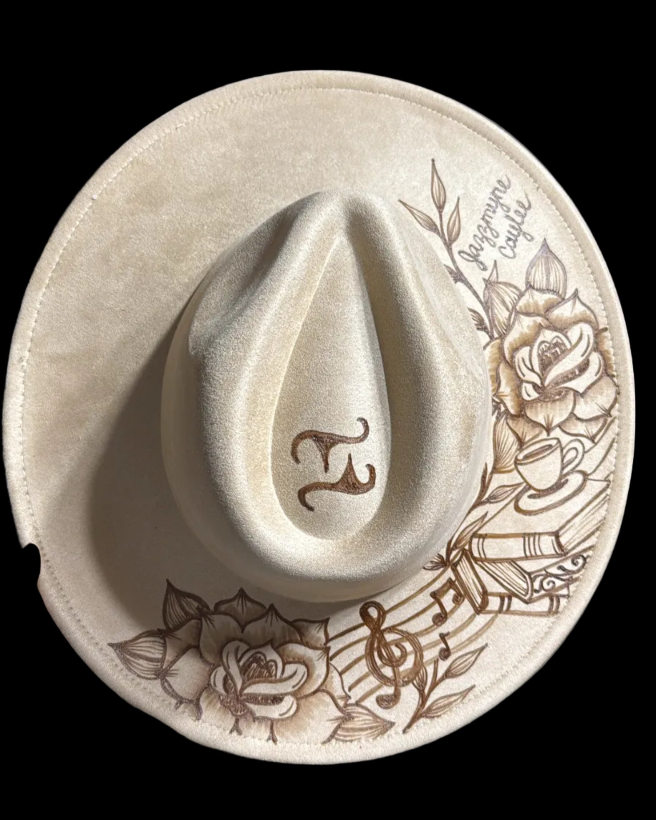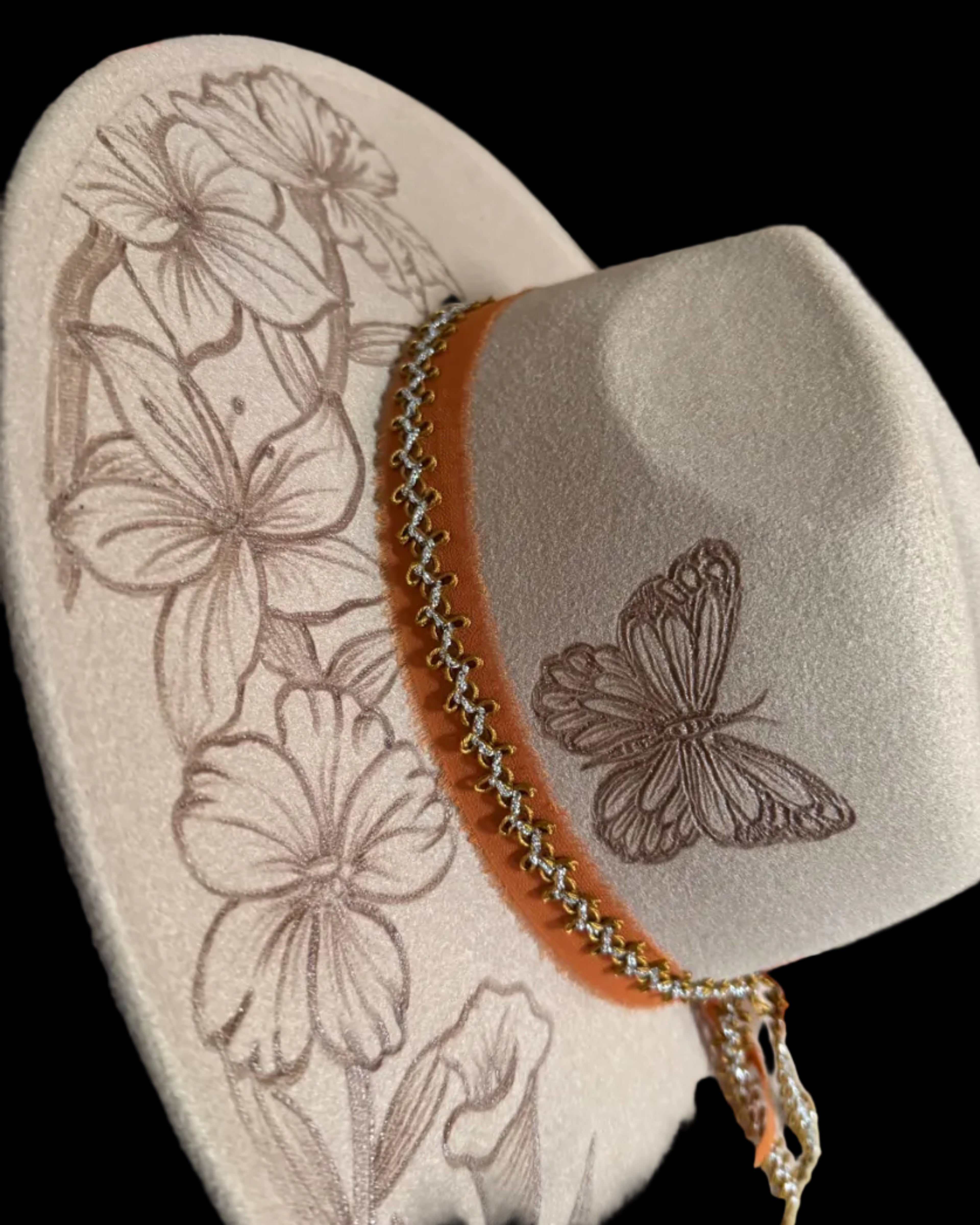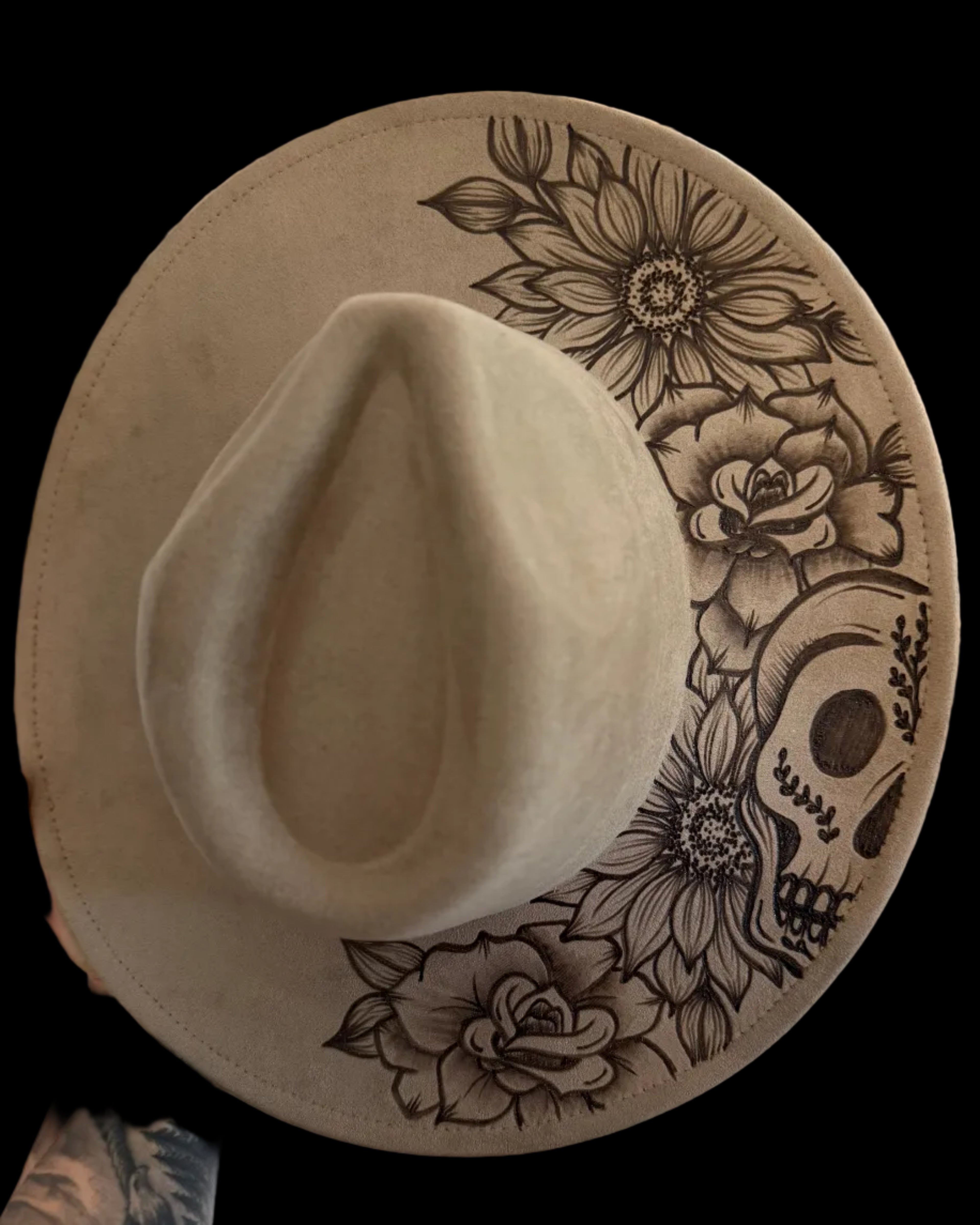 Each custom hat is one of a kind. Every burned detail is intentionally chosen, holding personal meaning unique to the individual who wears it.